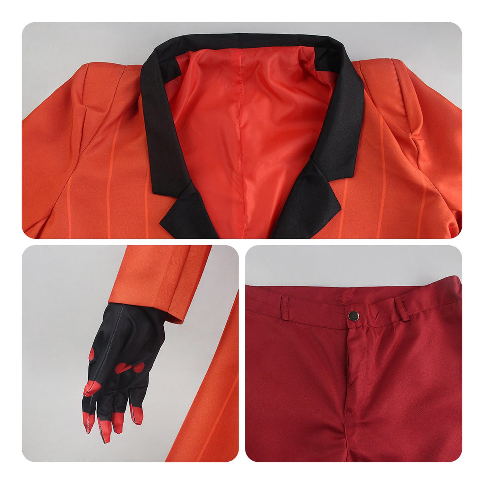 👗 Cosplay de Alastor disponible en tallas M, L y XL en color rojo. Incluye el traje completo del Demonio de la Radio con sombrero, bastón y todos los detalles del diseño retro del personaje. Material de alta calidad para un cosplay premium de Hazbin Hotel.